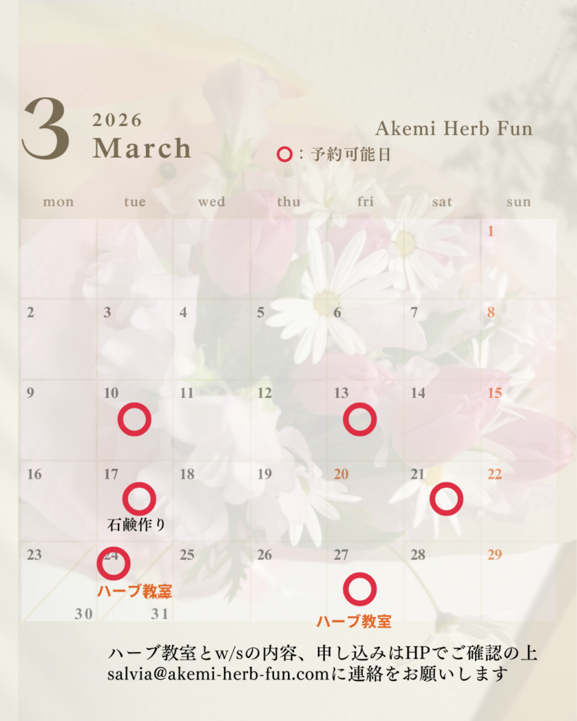 今年もハーブを通して皆様の健康に役立つものや、癒しの場をご提供できるように私も新たな取り組みなど発信できるようにスキルアップして行きたいと思っております。